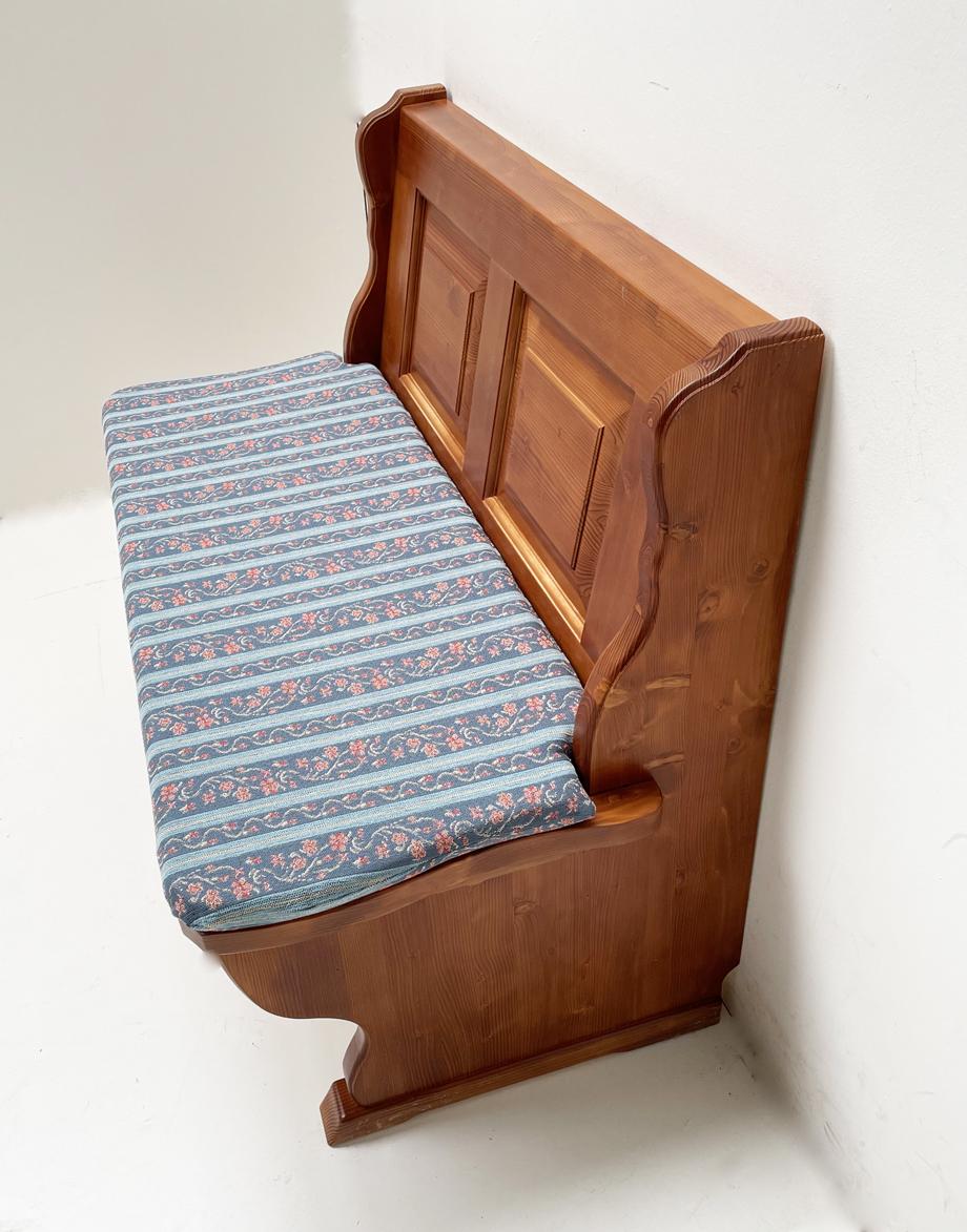 Eckbank Kufstein, Einzelbank 110 cm, Truhe, 1360056011 Kupferbraun lackiert, Polster Waidhaus blau