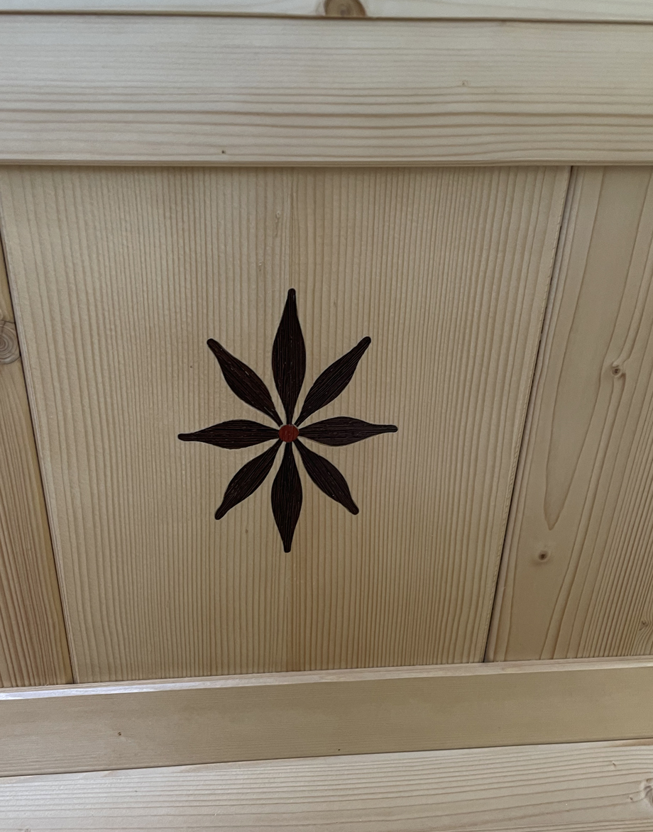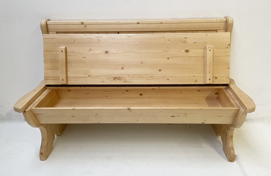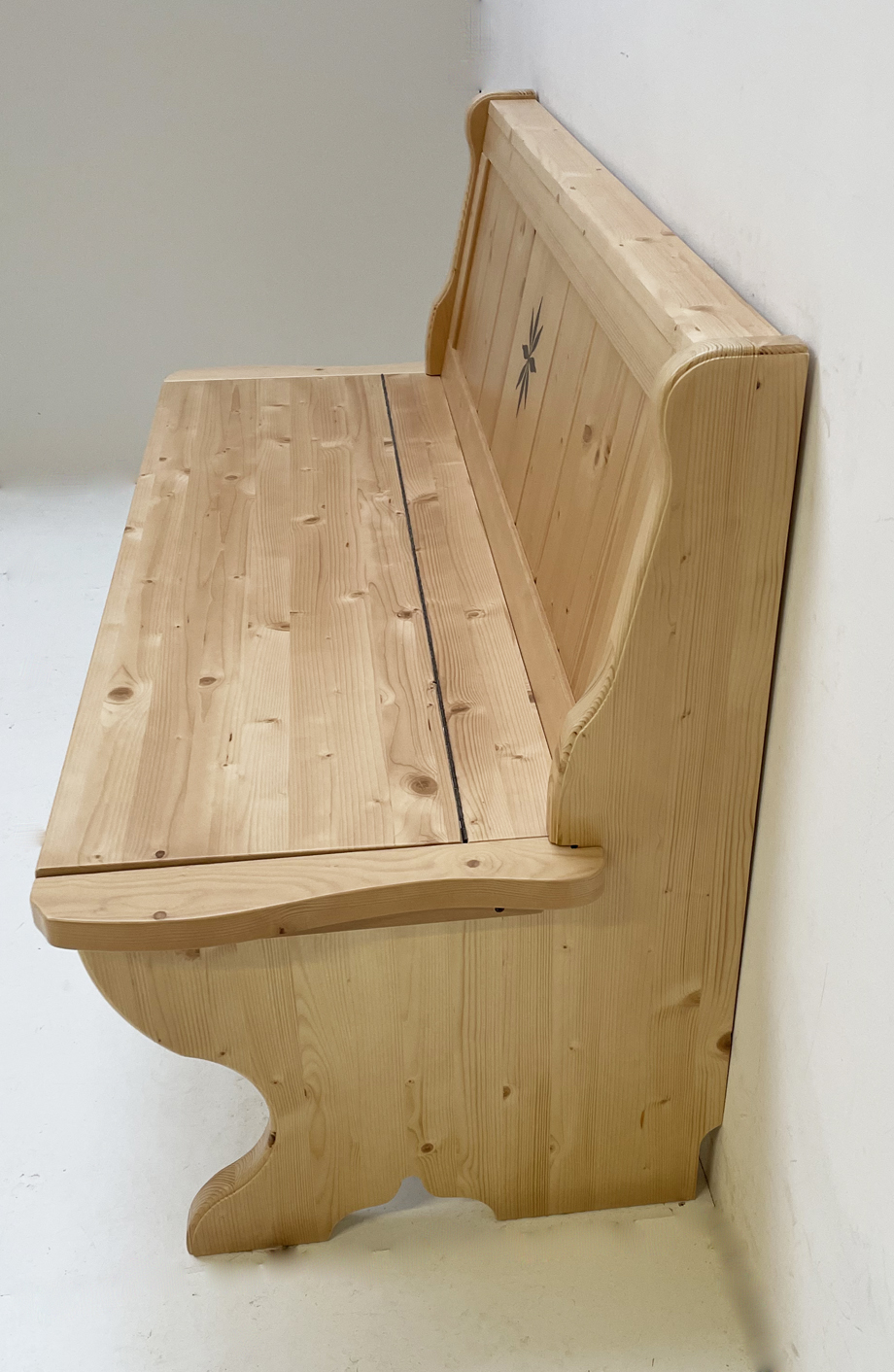 Eckbank Tirol, Einzelbank 140 cm, mit Truhen, Intarsien, Fichte Rosner lackiert