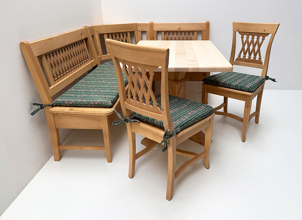 Eckbankgruppe Kramsach, Fichte massiv, Rosner Hartwachs, Ahorn natur lackiert :