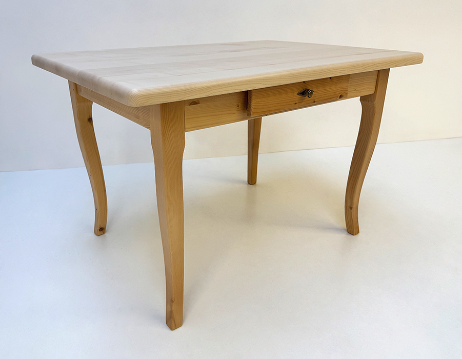 1 4-Fußtisch 1842 Ahornplatte 120/85 cm mit Schubladen, Ahorn natur lackiert