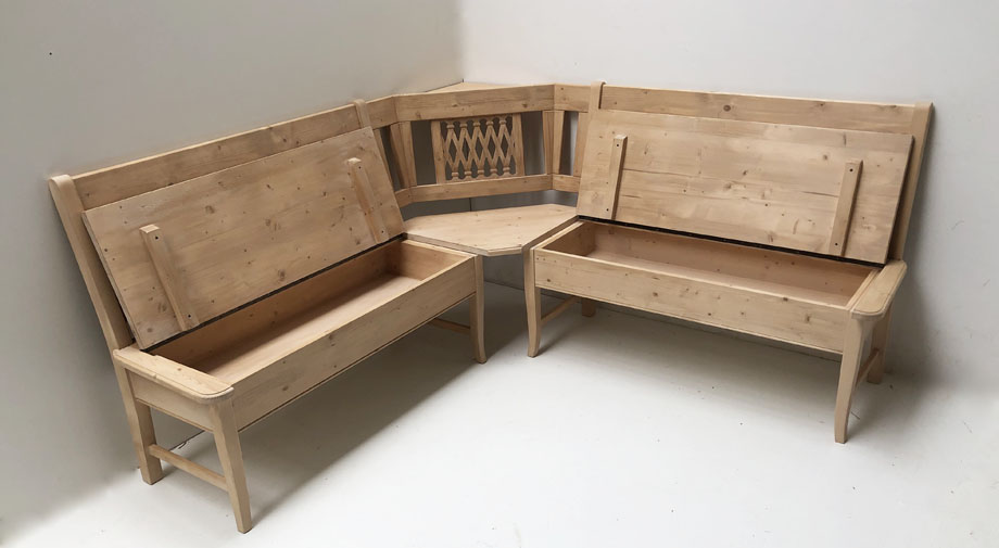 Kramsach, Eckbank 175/175 cm, mit Truhen, Rosner gewachst