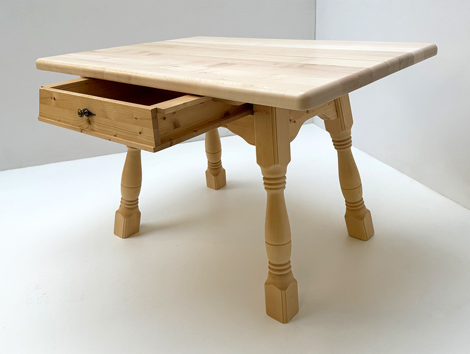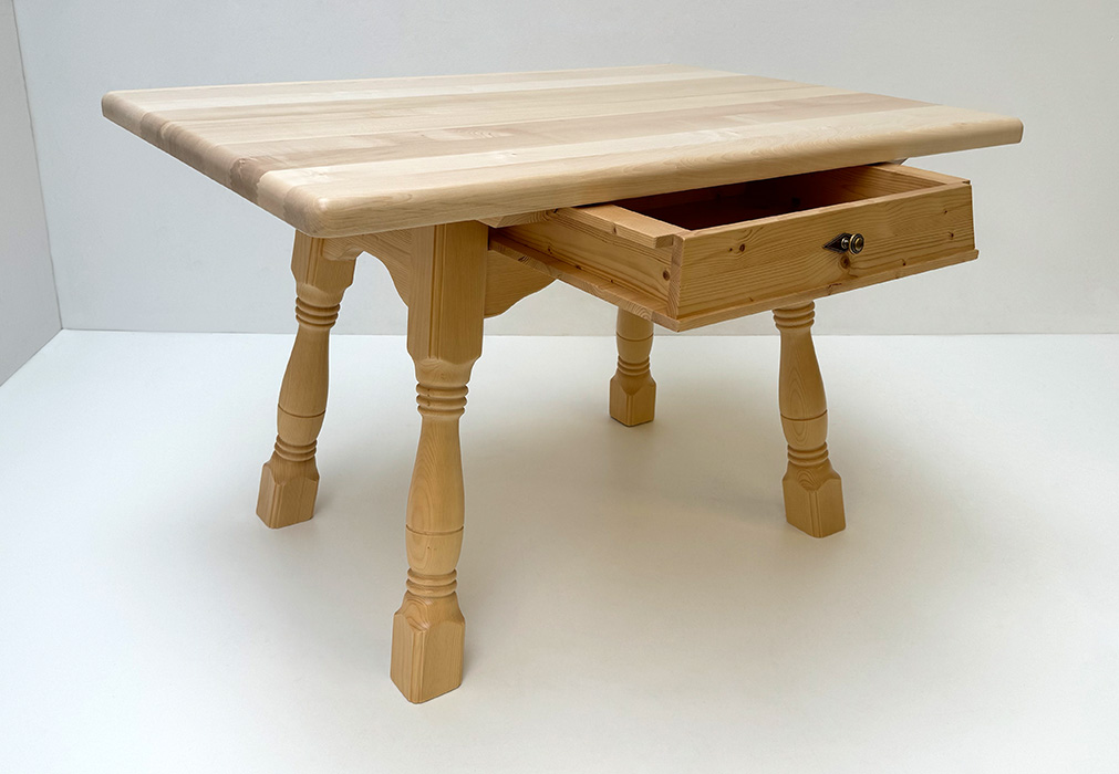 4-Fußtisch Mod. 1507 mit Schubladen, massive Fichteplatte 120/85 cm Rosner lackiert