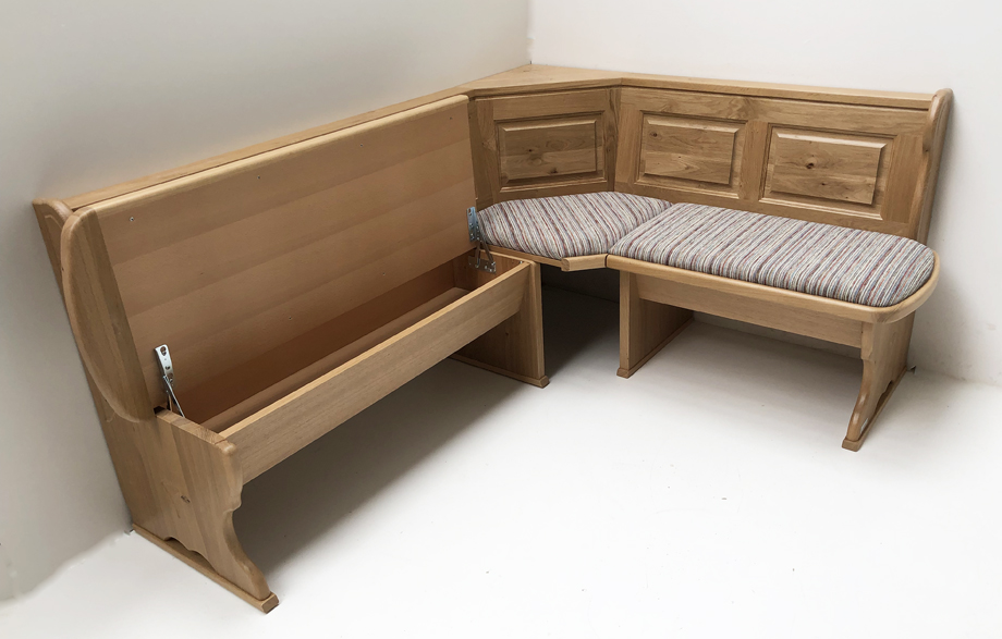 Eckbank Tegensee 149/189 cm, Truheneckbank, Eiche, Polsterplatte Stoff Salzburg MUNZERT