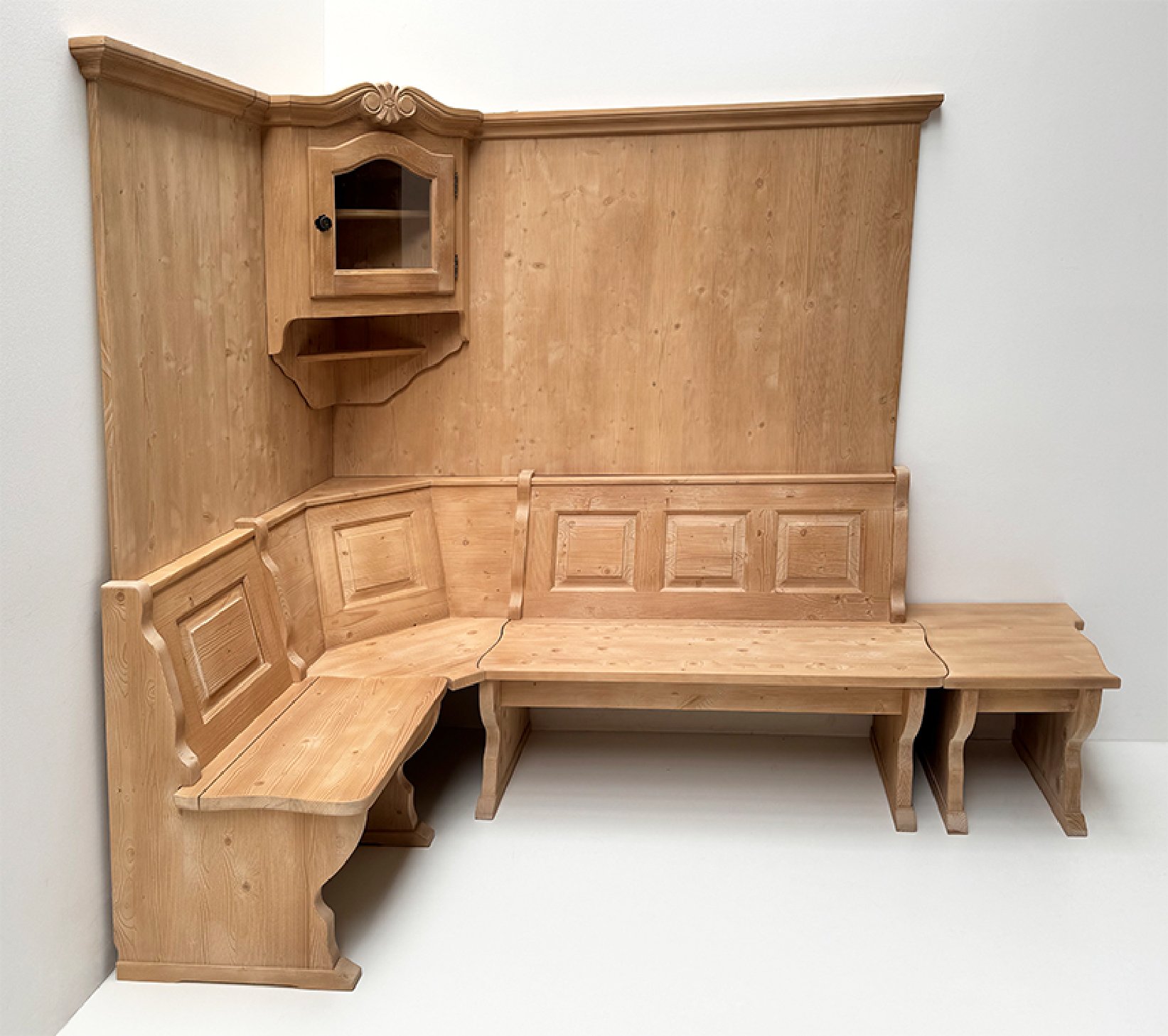 Eckbank Amberg 125/185 cm mit Wandverkleidung glatt, Eckhänger Amberg, Anstellhocker, System Amberg