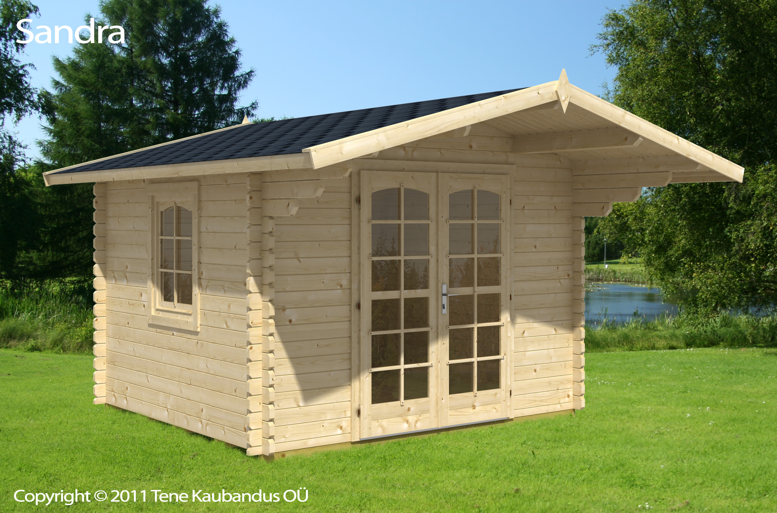 Alle im Werk von Grupotene / Tene Kaubandus hergestellte Gartenhäuser, Blockbohlenhäuser, Schutzdächer, Sommerhäuser und Garagen mit Wandstärken von 58 und 70 mm werden standardgemäß komplettiert