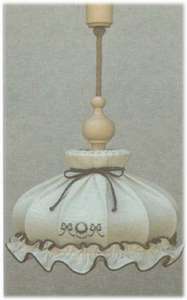 Pendelleuchte bestickt 1-flg., Schirm D45 cm, Holz Nr.247/2, Schirm Nr. Bk 245, Stoff blau Länge des Pendelstrick 100 cm, andere Längen gegen Aufpreis