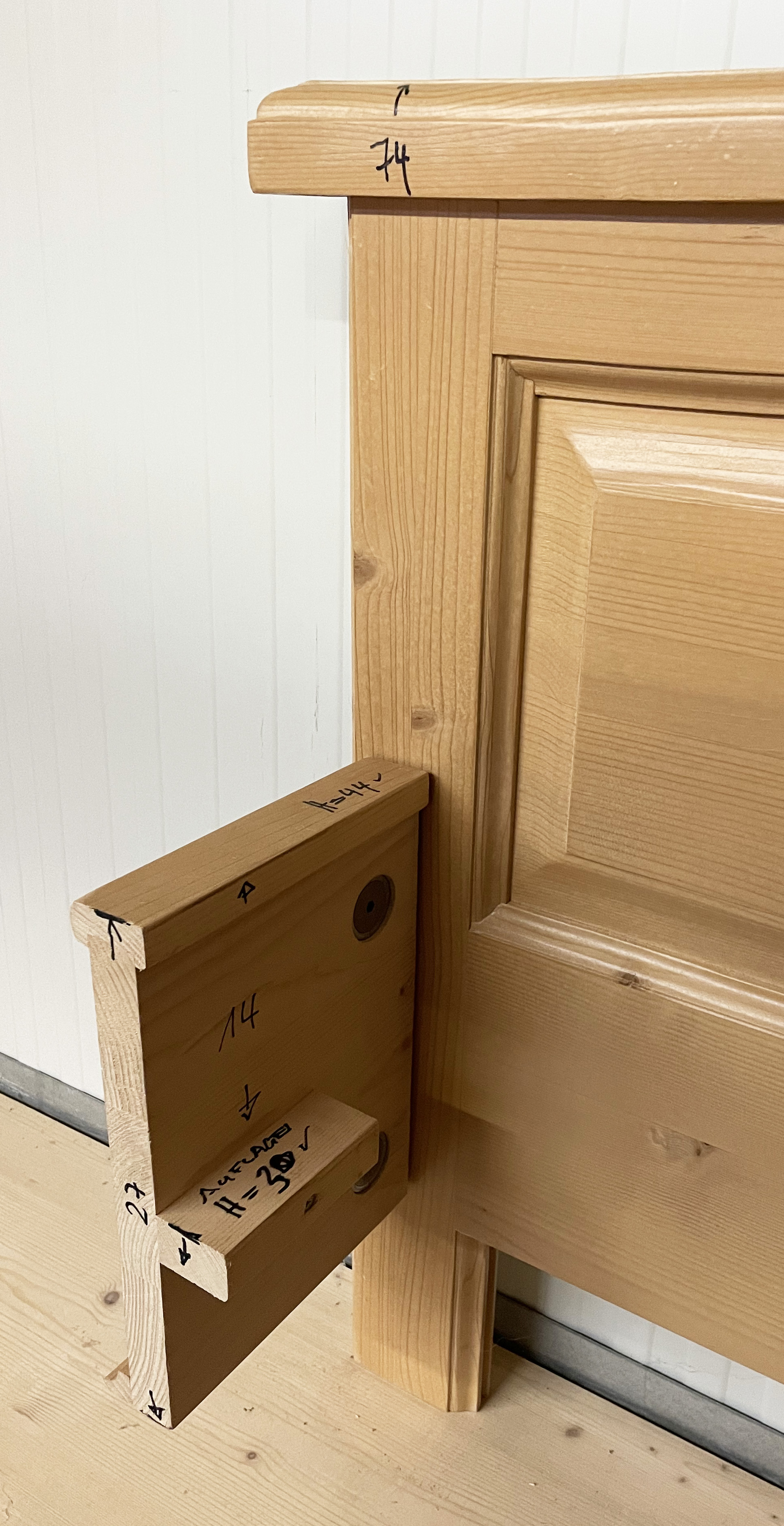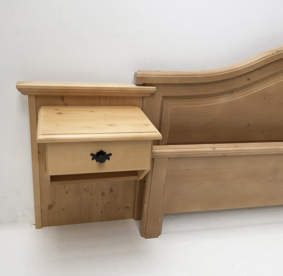 Hotel-Doppelbett Mod. Trient 180/200 cm Liegefläche und 199/208,9 Außenmaß, Kopfteilhöhe 91,2 cm, Fußteilhöhe Hotel 44,7 cm, Bettseitenhöhe 44,7 cm, Fichte massiv,