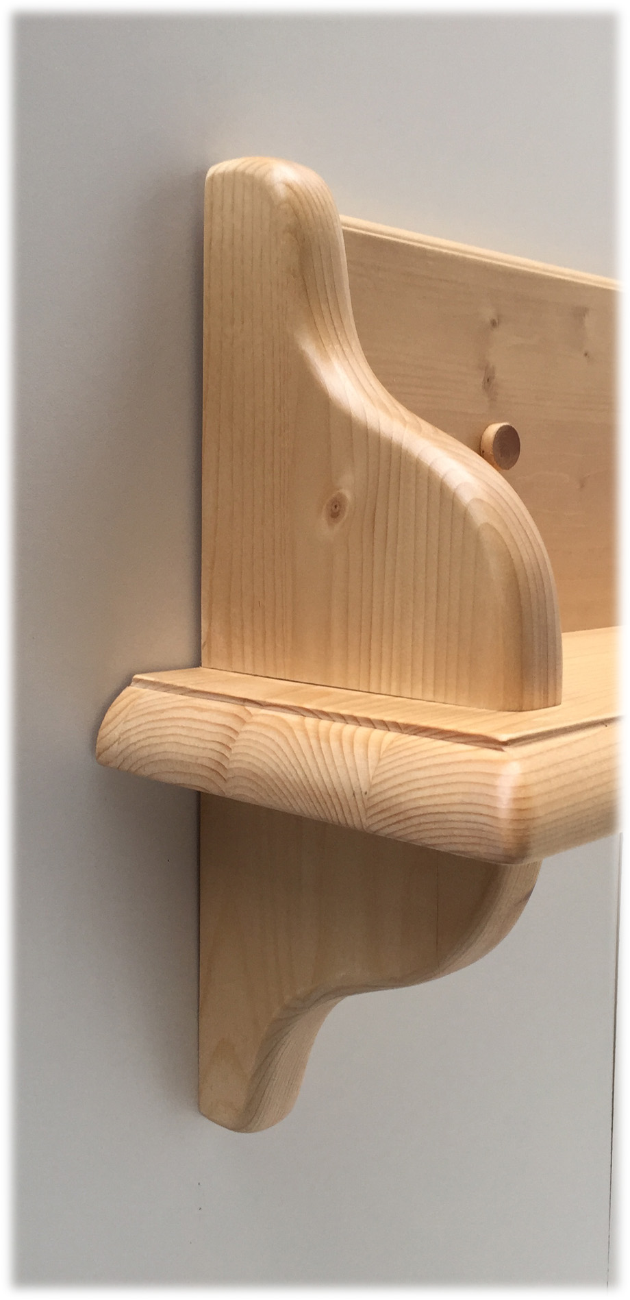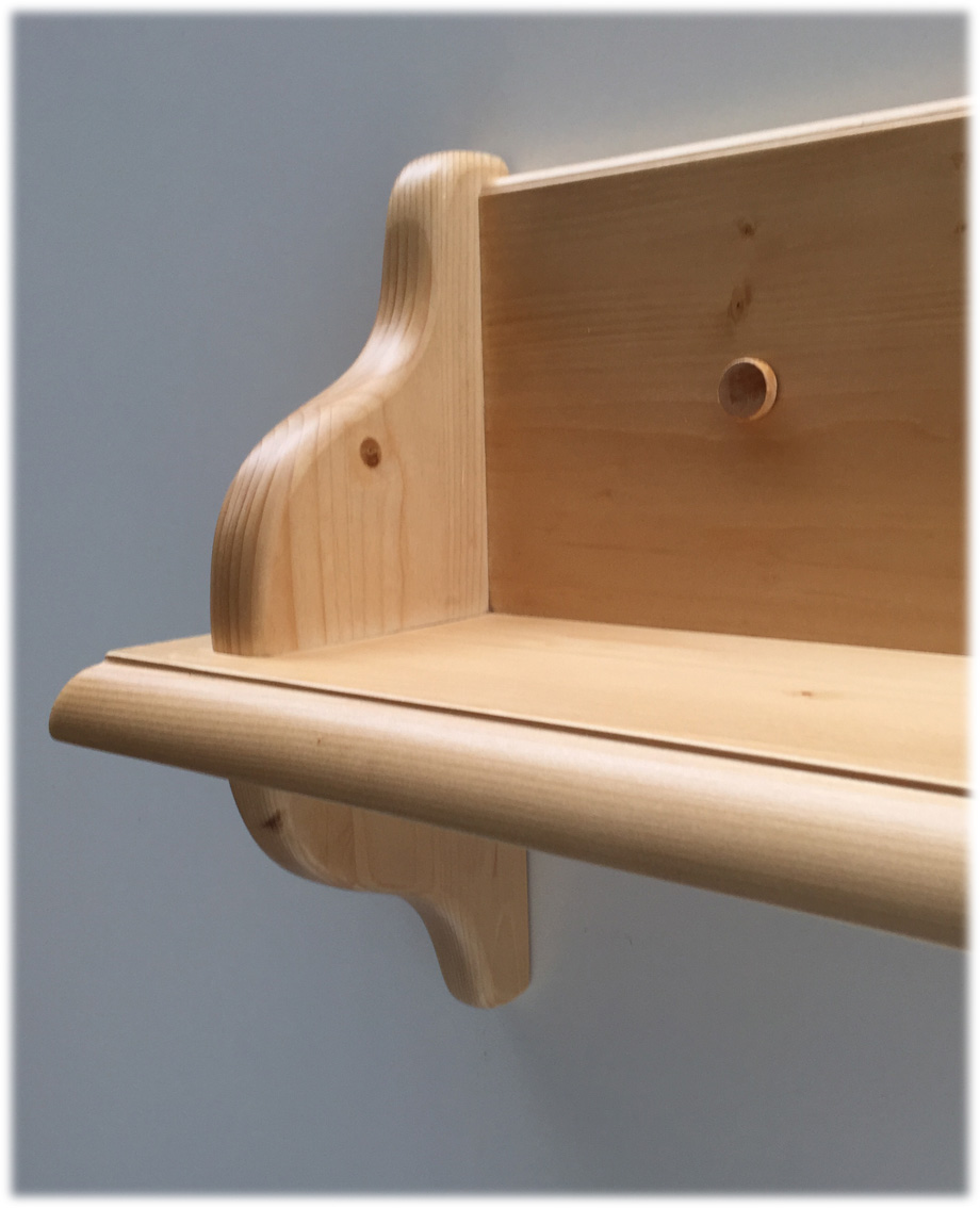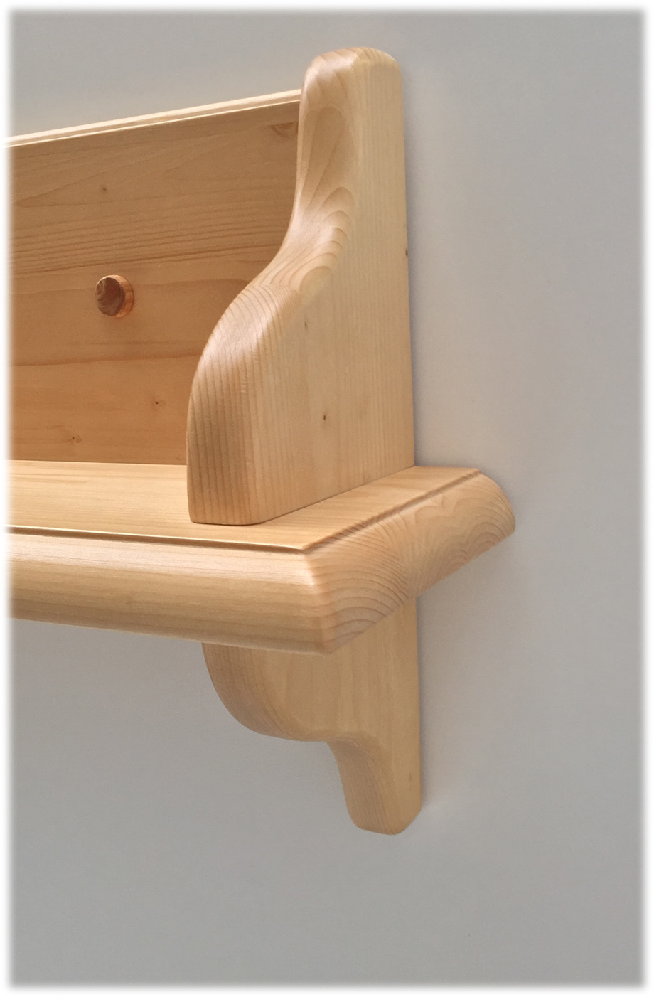 Konsole 200 cm (mit Rückteil und seitlichem Buchstützenbrett), Fichte massiv, Oberfläche Rosner Hartwachs