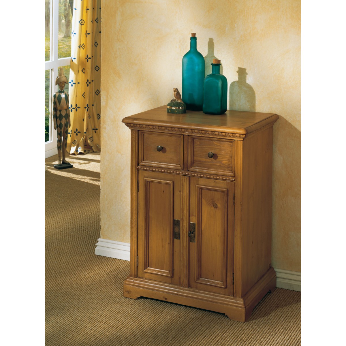 zwei Türen unten versehen. Hinter den Türen befindet sich ein Holzfachboden.