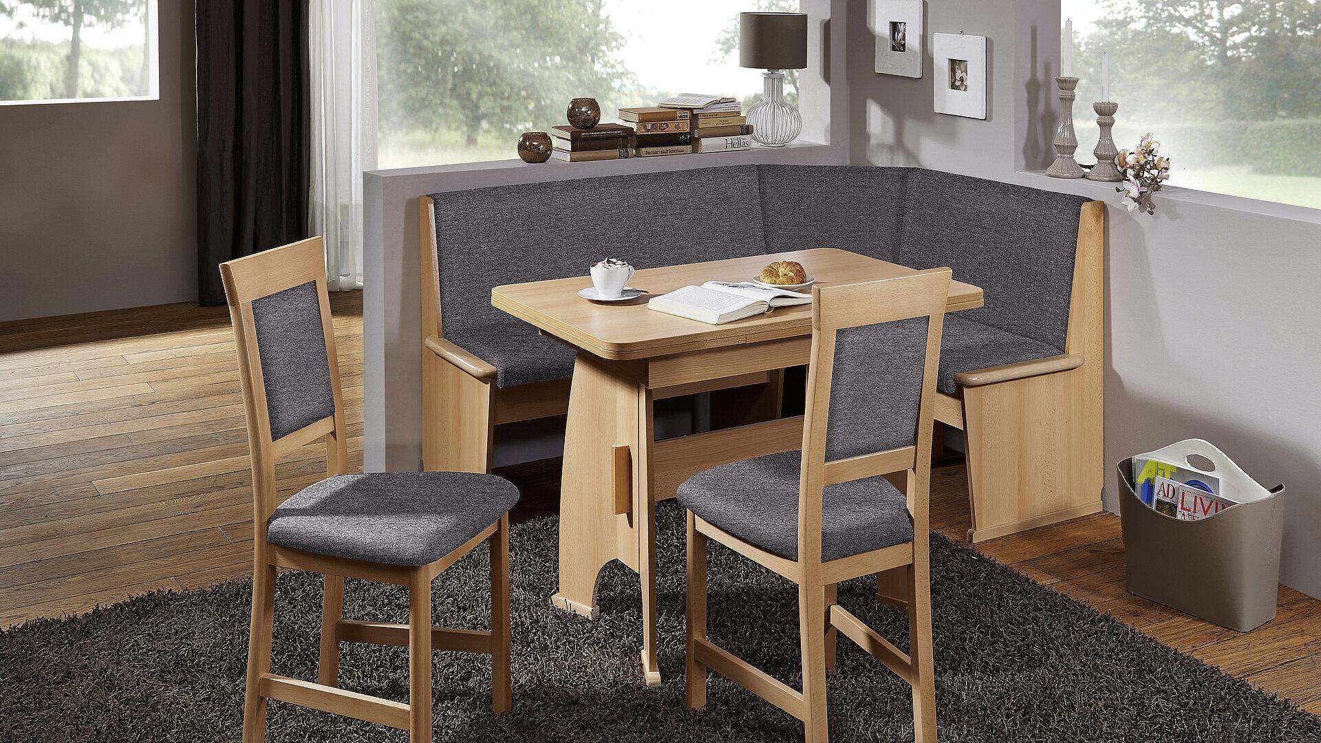 Eckbankgruppe Isar mit Wangentisch, Kernbuche lackiert