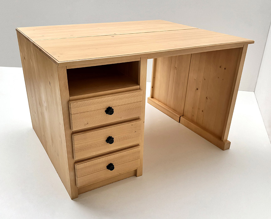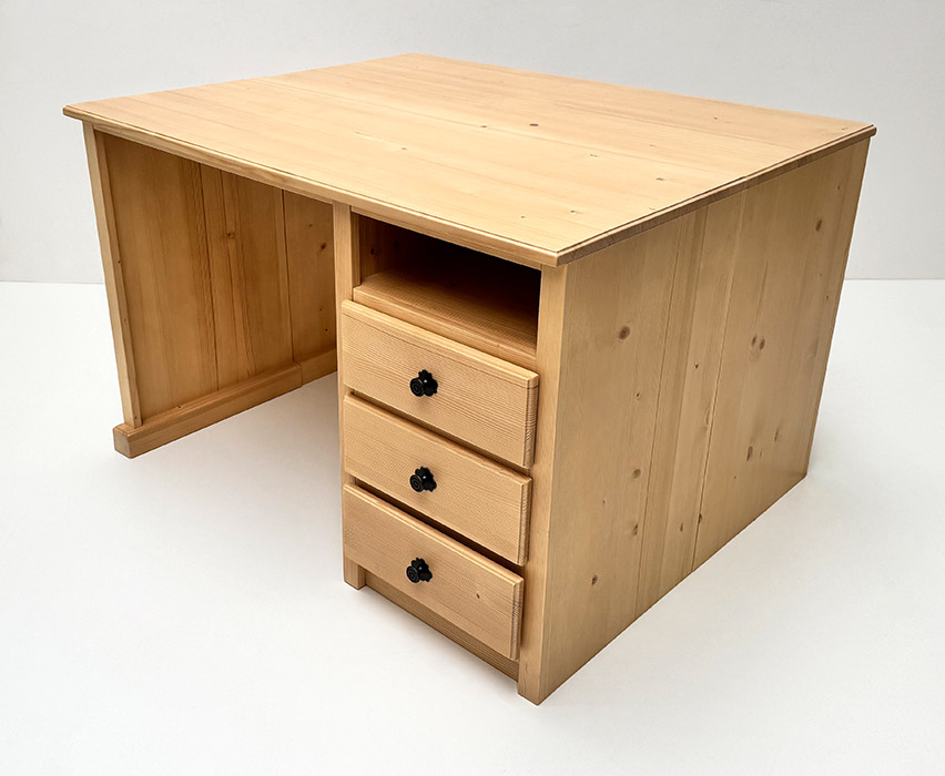 Schreibtisch Füssen 120/50 cm, 1 Container recht mit Sockel geschloßen, 3 Schubladen, 1 offenes Fach