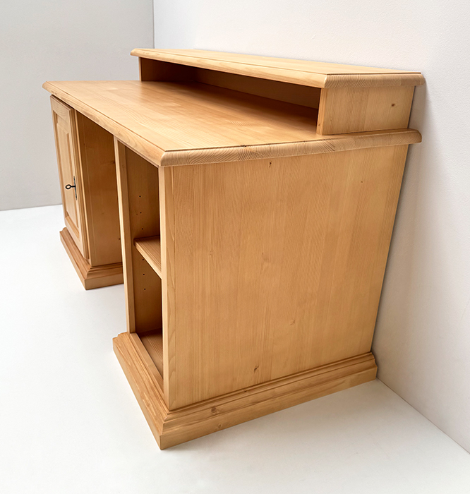 Schreibtisch 150/70/75 cm, (B/T/H), 1 Container mit Schubladen und Türe mit Schloß, 1 PC Regal, Fichte massiv
