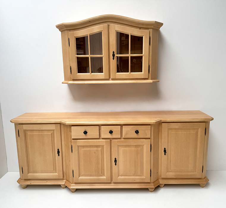 Anrichte Amberg 3-trg., mit Wandbord Amberg 3-trg, Fichte Hartwachs, Schloss, Metallknöpfe, Rosetten