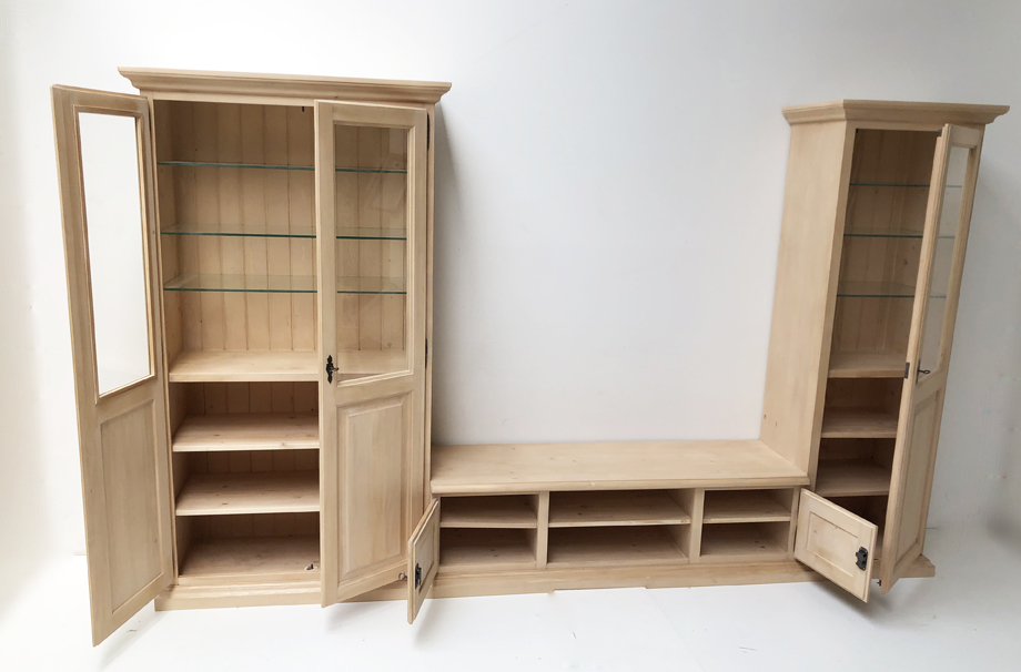 Wohnwand Füssen, Vitrine 2-trg., TV-Lowboard, Vitrine 1-trg.