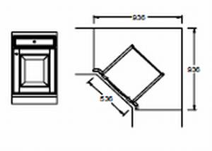Eck-Unterteil 1-teilig , 1 Tür mit Holzfüllung , 1 Lade mit Vollauszug , 1 Innenfachboden , inkl. Sockel und Abdeckplatte , Maße inkl. Ecklisene , L:940 H:830 T:520