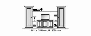 Abm: 355/209 cm B/H 2 Wohnschrank 1-tlg WS02P1 1 Sideboard 3-tlg SBT03P3 4 Verbindungsfächer 120cm 2 Fächer freitragend 60cm 1 Verbindungsfach 210cm