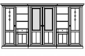 Wohnschrank 6-teilig , 2 Türen mit Holz-Glasfüllung , 4 Türen mit Holzfüllung , 2 Laden mit Vollauszug , 14 Innfachböden , 4 Regalfachböden Mittelteil vorgezogen , L:3590 H:2090 T:470/530