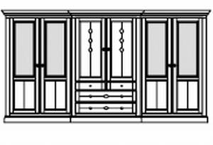 Wohnschrank 6-teilig , 4 Türen mit Holz-Glasfüllung , 2 Türen mit Holzfüllung , 4 Laden mit Vollauszug , 10 Innenfachböden , Mittelteil Sondertiefe , Türen einschiebbar , L:3590 H:2090 T:470/530