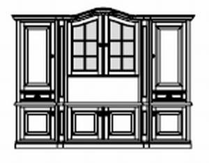 Wohnschrank 4-teilig , 6 Türen mit Holzfüllung , 2 Schweifungstüren mit , Glasfüllung , 2 Laden mit Vollauszug , 8 Innenfachböden , 1 offene Nische , L:2630 H:2180 T:550/650