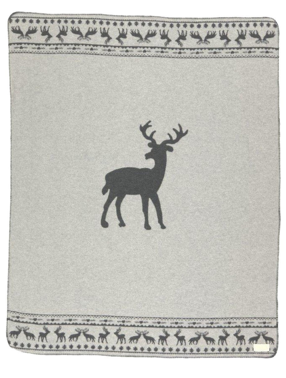 Wolldecke Hirsch grau 140 x 185 cm