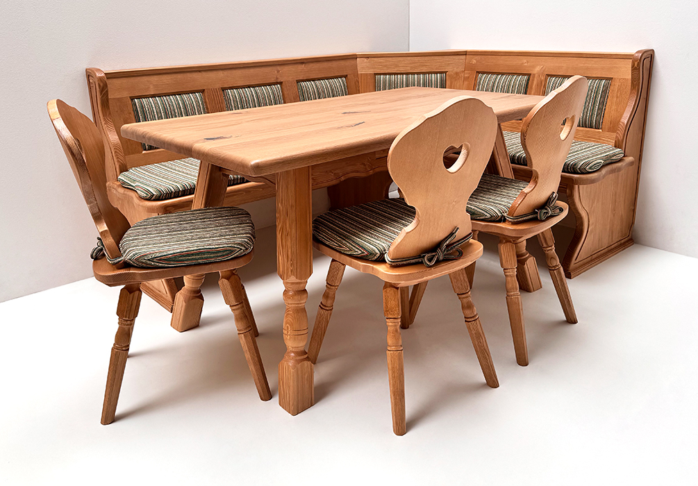 Eckbankgruppe LINDAU 125/165 Fichte, Tisch 4510-Amberg, Bauernstühle Vienna, Polster genäht TS-1667