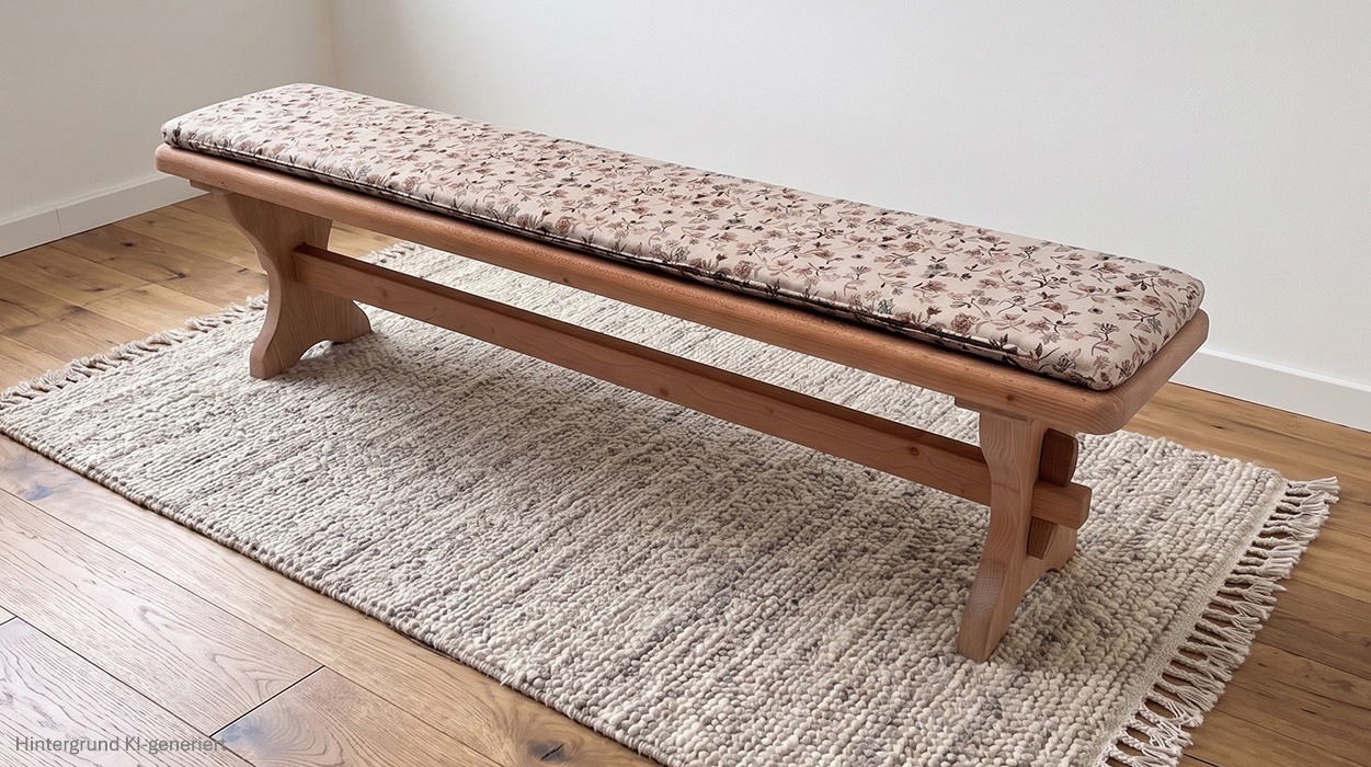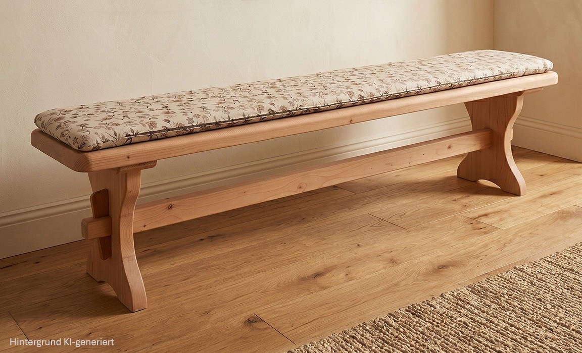 Vorbank Lindau, 180 cm, Ausführung schwer, Rosner gewachst, Polster genäht, Mülheim beige